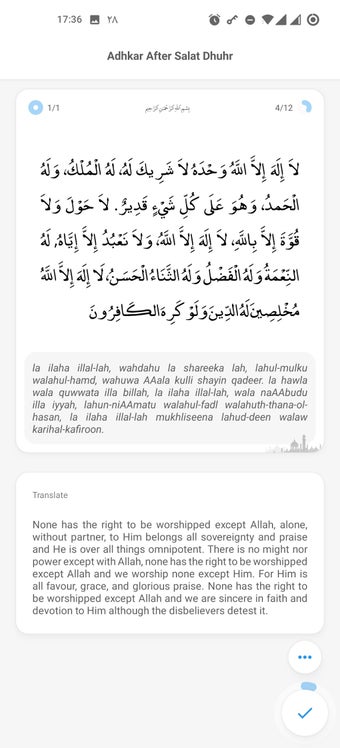 除了这些功能外,Im Muslim还提供了带有阿拉伯文字、音标、翻译和音频朗诵(mp3)的完整古兰经,支持126种语言。该应用还包括一款用于计算每次拜功课中的祷告次数的念珠,一个显示通向麦加方向的动画Qibla指南针,一个完整的伊斯兰教师历,可估算出诸如开斋节和古尔邦节等重要日期,以及Hisn'ul Muslim,一本包含祷告和祈求的集合。该应用已翻译成英语、西班牙语、法语、意大利语、阿拉伯语和波斯语,使其适用于来自不同国家和文化的广泛用户群体。